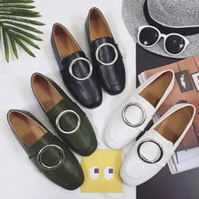 2017春秋季新款韩版方头平跟单鞋女圆扣百搭平底鞋瓢鞋豆豆鞋女鞋