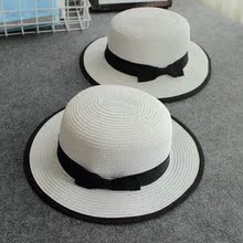小辣椒宽沿遮阳草帽礼帽潮夏季白色平顶帽子渡假蝴蝶结沙滩帽圆帽