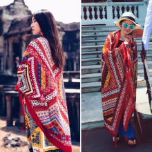 新款棉麻围巾女2016春夏超大民族风防晒披肩围巾两用海边沙滩丝巾