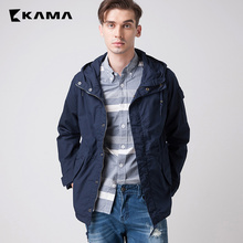卡玛KAMA 秋装 男士风衣时尚连帽纯棉休闲外套男2116721