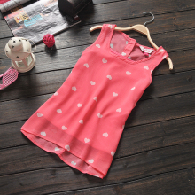 夏季新款外贸女装 甜美可爱无袖雪纺衫 圆点爱心雪纺上衣 背心Nc1