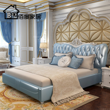 简约欧式真皮床 1.8米公主床婚床1.5米软体床欧式皮床 主卧双人床