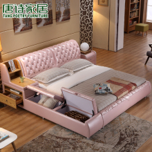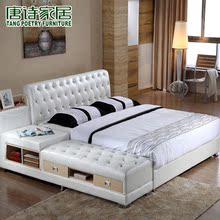 唐诗 多功能三抽储物皮床 真皮床 皮床 皮艺床 高箱 榻榻米 软床