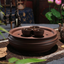 功夫茶盘茶海茶船紫砂茶盘茶具家用圆形陶瓷紫砂茶具储水式包邮