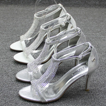 外贸单英国品牌露趾超高跟水钻性感舒适凉鞋细跟丁字式扣带女鞋子