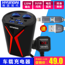 韩国现代汽车车载充电器一拖二点烟器三USB多功能手机车充能量杯