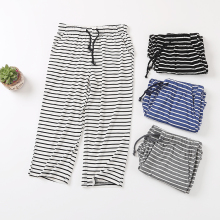 外贸女士家居裤莫代尔睡裤夏季宽松居家休闲中裤薄款条纹七分短裤