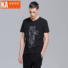 韩版夏季男士短袖t恤圆领纯棉3D印花青少年修身半袖男装体恤衫潮