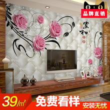 现代中式家和玫瑰软包墙纸壁画电视背景墙沙发影视墙壁布墙布壁纸