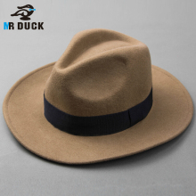 mrduck 新款羊毛呢礼帽男士帽子女 黑色复古大边宽檐巴拿马爵士帽