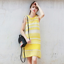 夏装复古POLO针织连衣裙女夏季2017新款学生韩版宽松显瘦t恤女装