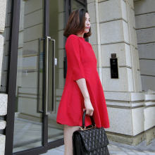 ALU 定制 超气场显瘦7分袖 进口机制作 正红连衣裙