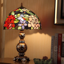 宜轩欧式艺术卧室床头灯复古创意田园客厅书房调光蒂凡尼琉璃台灯
