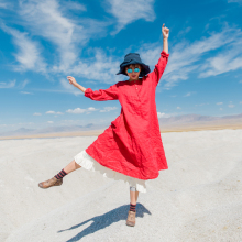绽放A602/虹漾/复古春季亚麻打底连衣裙女长袖宽松中长款民族风