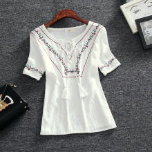 白色短袖t恤女韩范百搭学生v领系带打底时尚宽松显瘦夏季新款上衣