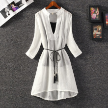 2017春新款中长款雪纺衫沙滩防晒衣服女开衫大码气质超薄飘逸外套