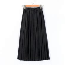 6271101外贸原单纯色梭织透气百褶松紧腰半身裙长裙有大码2D04