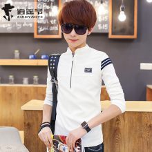 2016秋天新款青少年男长袖t恤中学生体恤立领小衫修身打底衫潮男