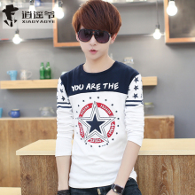 男士t恤 长袖 春秋款潮 个性圆领修身纯棉薄款新款学生潮流小衫男