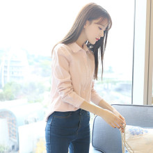 春秋新款韩版小清新兔耳朵学生纯棉白色衬衫女长袖修身打底衬衣女