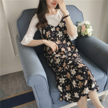 韩版宽松显瘦中长款碎花裙子 上衣+雪纺吊带裙连衣裙两件套装女春