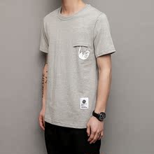 夏季原创可爱卡通t恤男 创意口袋印花内搭体恤衫男修身圆领情侣装