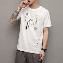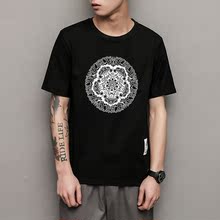 夏装潮流日系印花短袖t恤男式 青年中国民族风复古纯棉TEE百搭款