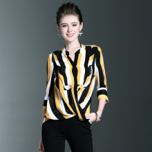 真丝v领条纹衬衫春装2017新款职业装女欧洲站潮百搭衬衣上衣C2799