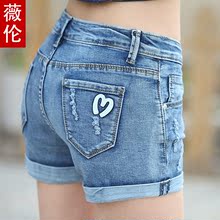 韩版夏季修身弹力显瘦破洞牛仔短裤女热裤学生百搭休闲大码短裤子