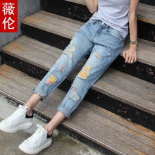 2017春季新款韩版宽松显瘦破洞牛仔裤女九分裤bf乞丐裤学生哈伦裤