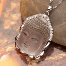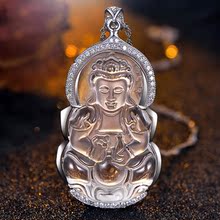 925纯银吊坠白水晶石纯银吊坠项链如来普贤虚空藏观音菩萨本命坠