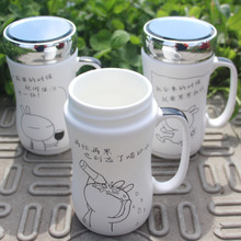 创意马克杯 水杯牛奶杯 个性杯兔斯基咖啡杯卡通可爱陶瓷杯子带盖