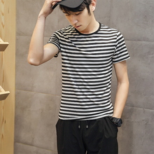 男士条纹短袖T恤夏季韩版修身圆领海魂衫青少年日系潮男装上衣服