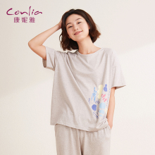 康妮雅家居服套装女 夏季休闲宽松全棉印花女装时尚家居睡衣