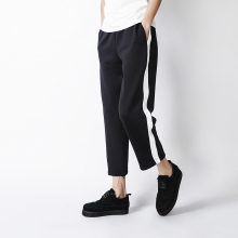 韩版潮流男士一条杠休闲裤子修身小脚裤收口阔腿裤运动白边九分裤