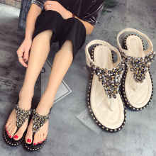 2017夏季新款波西米亚风亮片铆钉夹趾松紧带凉鞋低跟夹脚凉鞋女鞋