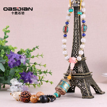 十胜石坊高档金曜石龙凤呈祥汽车挂饰 水晶 黑曜石汽车挂件虎眼石