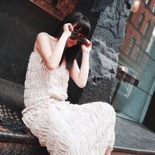 LAMPS 欧美女装春夏季无袖连衣长裙 A字型蓬蓬下摆吊带裙 限量