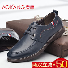 奥康男鞋春季真皮头层皮系带商务休闲皮鞋男圆头男士皮鞋大码