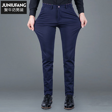 夏季男士休闲裤青年修身直筒长裤大码男装弹力加绒加厚裤子夏薄款