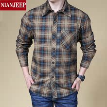 NIAN JEEP/吉普盾男士长袖衬衫格子商务休闲宽松大码纯棉衬衣衬衫