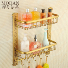 仿古全铜 浴室置物架2层壁挂淋浴房卫生间卫浴三角欧式网篮转角架