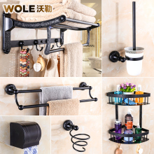 沃勒黑色毛巾架古铜色折叠浴巾架带挂钩卫生间置物架欧式浴室挂件