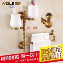 沃勒全铜仿古旋转毛巾架活动杆毛巾杆卫生间置物架卫浴五金挂件