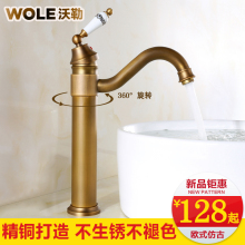 沃勒仿古水龙头冷热 全铜水龙头面盆龙头欧式台下盆 复古洗头旋转