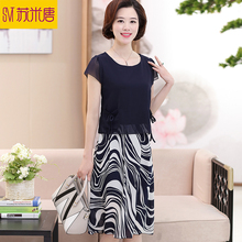 妈妈夏装雪纺衫连衣裙40-50岁2017新款中年人妇女假两件短袖衣服