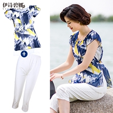母亲节妈妈装夏装短袖上衣2017新款套装40岁50中年女装春装衣服潮