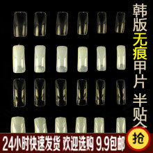韩国进口成品500片透明假指甲超亮透明自然半贴全贴对折无痕甲片