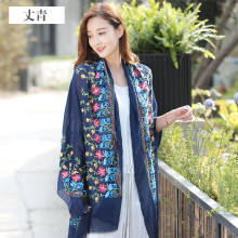 2017新款春季丝巾女百搭潮韩版冬季雪纺刺绣民族风披肩两用围巾