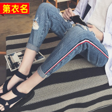 2017新款牛仔裤男士小脚铅笔休闲九9分裤子韩版修身型破洞青年潮